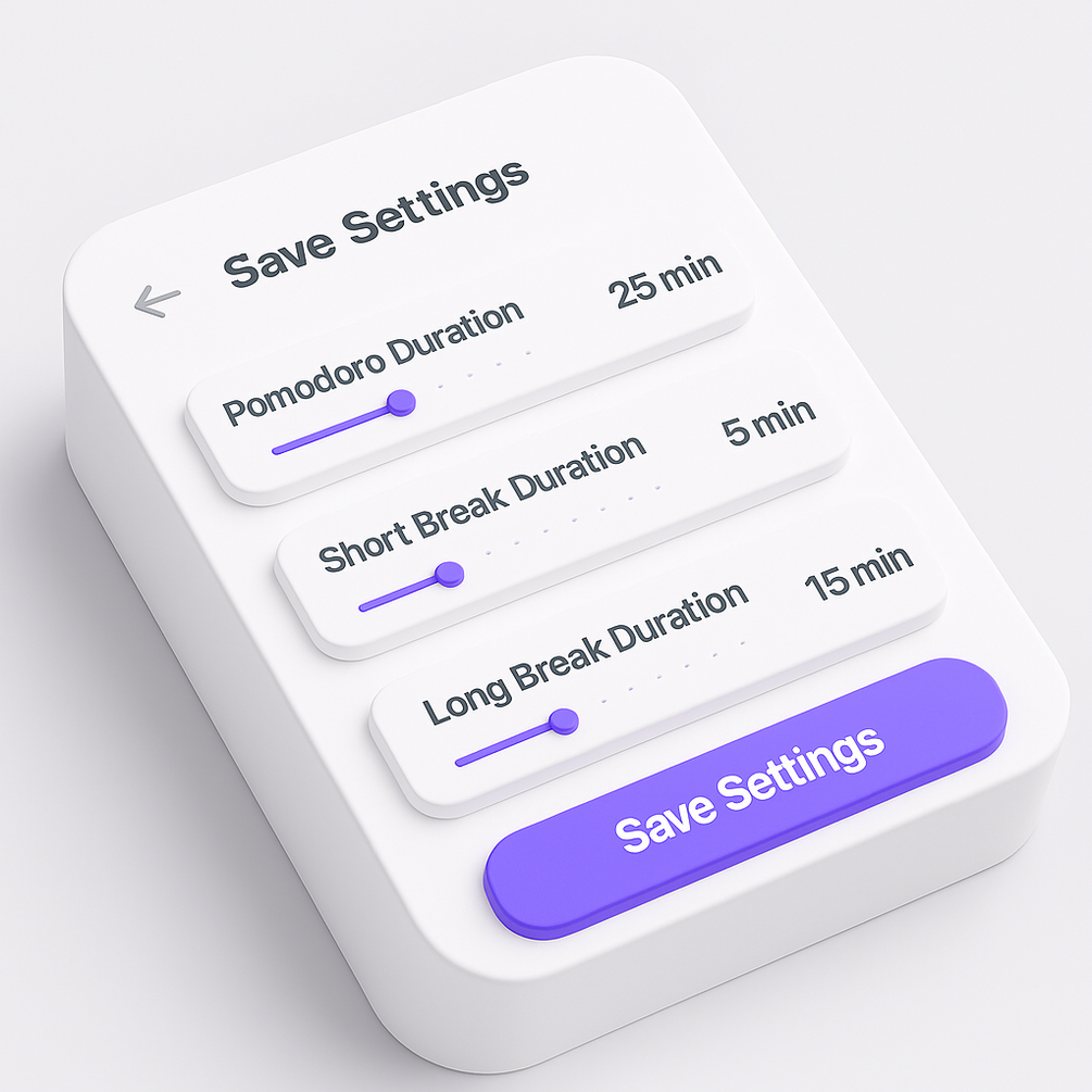 - ποΈ Settings screen to customize durations (Pomodoro, short/long breaks)